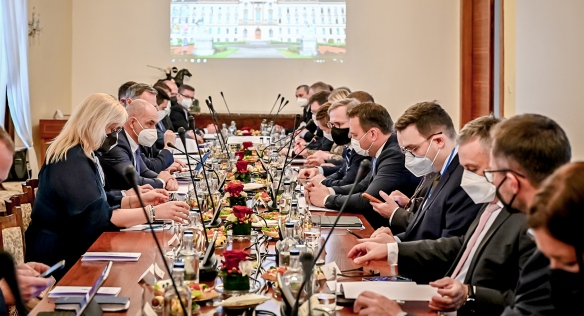 Vláda Petra Fialy se ve čtvrtek 20. ledna 2022 sešla v Hrzánském paláci se zástupci Asociace krajů ČR. Na prvním oficiálním jednání nového kabinetu s hejtmany se kromě nastavení pravidelné spolupráce řešila i aktuální témata z oblasti zdravotnictví, dopravy či kultury a také o možné budoucí změny ve financování krajských samospráv prostřednictvím rozpočtového určení daní.